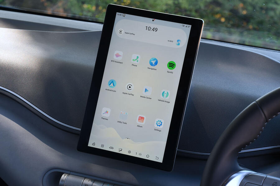 Just know that as soon as you switch to the system’s smartphone mirroring mode (wireless Apple CarPlay and Android Auto come as standard; wireless charging only on top-tier models), the screen automatically motors back to its landscape orientation. Also note that BYD’s factory sat-nav isn’t really good enough to make you inclined to use it over your smartphone’s Google Maps app.