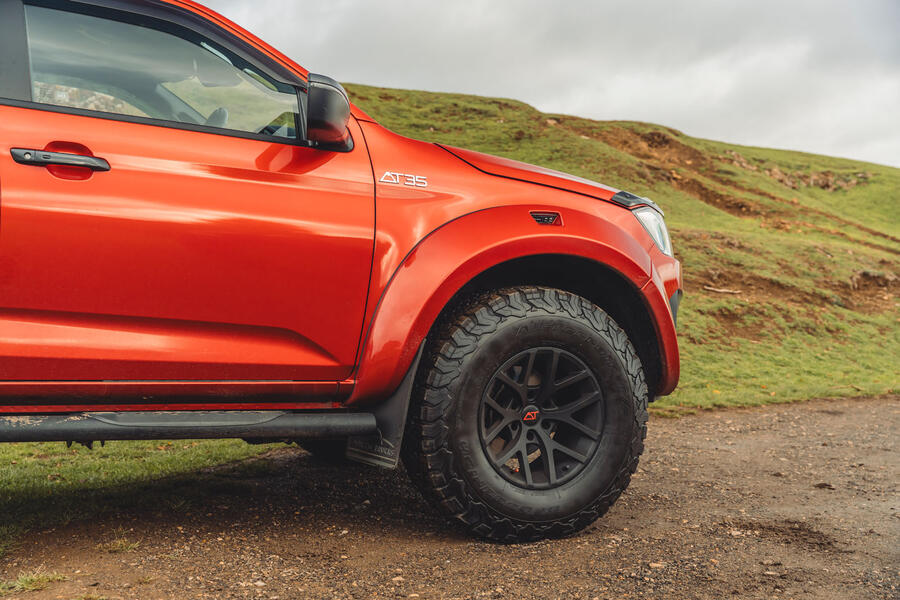 The version of the D-Max we have here is the third model generation that the market has seen since 2002. The current version arrived in the UK in 2021. It came, back then, with a widely revised, lightened and stiffened ladder-frame chassis, and a new longer-stroke, double-wishbone front axle intended to improve both ride and handling. At the rear, the D-Max uses a live axle and class-typical leaf springs, both of which the AT35 version